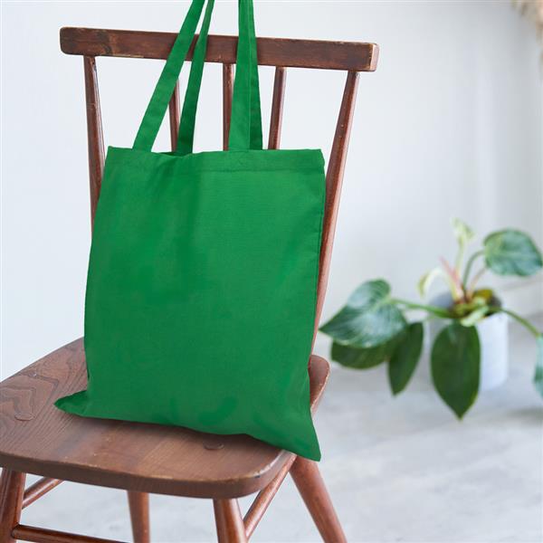 Torba na zakupy, posiada długie uchwyty umożliwiające noszenie na ramieniu, produkt wykonany z bawełny o gramaturze 180 g/m2