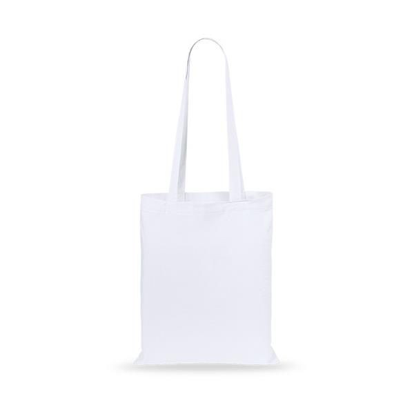 Torba na zakupy, posiada długie uchwyty umożliwiające noszenie na ramieniu, produkt wykonany z bawełny o gramaturze 140g/m2