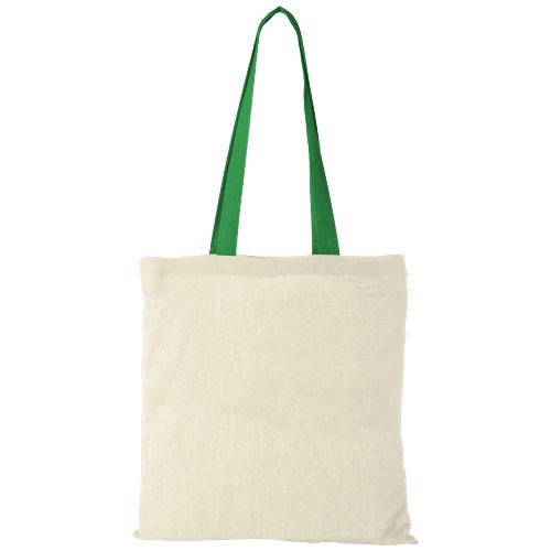 Nevada to lekka i przyjazna dla budżetu torba typu tote o gramaturze 100 g/m2 z otwartą komorą główną i modnym akcentem dzięki kolorowym uchwytom do wyboru. Sprawia to, że bawełniana torba na zakupy będzie przyciągać wzrok na każdej imprezie, kongresie czy festiwalu. Uchwyty mają 30 cm, dzięki czemu można ją łatwo nosić na ramieniu. Torba oferuje wystarczająco dużo miejsca na różne loga lub teksty, małe lub duże.
