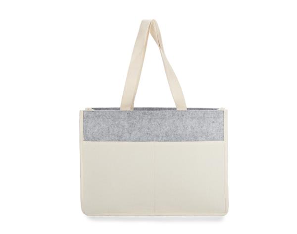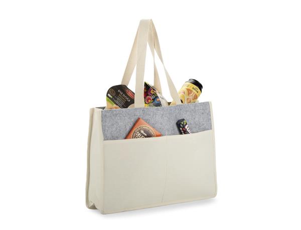 Torba bawełniana PAJ o gramaturze 320 g łączy dwa materiały – przód i tył wykonano z filcu, natomiast spód, boki, uchwyty oraz dwie przednie kieszenie z bawełny. Posiada długie uszy, które pozwalają na wygodne noszenie na ramieniu. Otwarta konstrukcja umożliwia szybki dostęp do zawartości. Sprawdzi się zarówno jako torba na zakupy, jak i na plażę czy spacer. Możliwość znakowania czyni ją praktycznym gadżetem reklamowym.