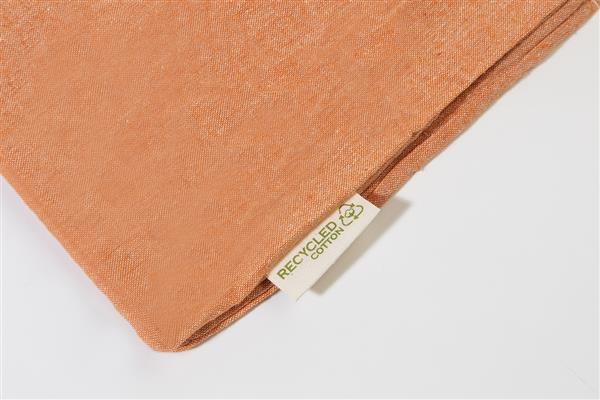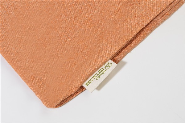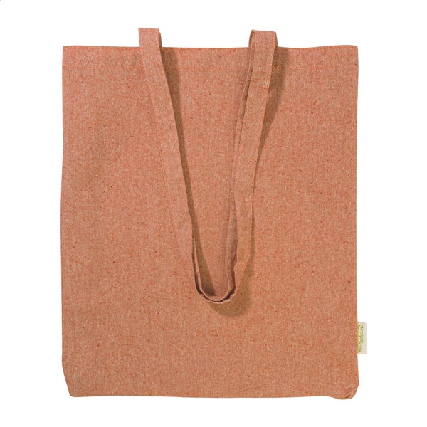 Torba na zakupy wielokrotnego użytku z bawełny z recyklingu z długimi uchwytami i charakterystyczną metką. 100% bawełna z recyklingu, 140 g/m2.