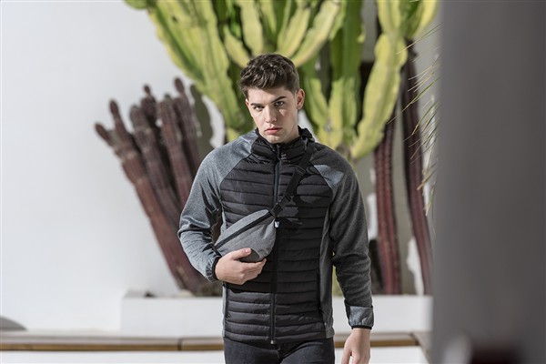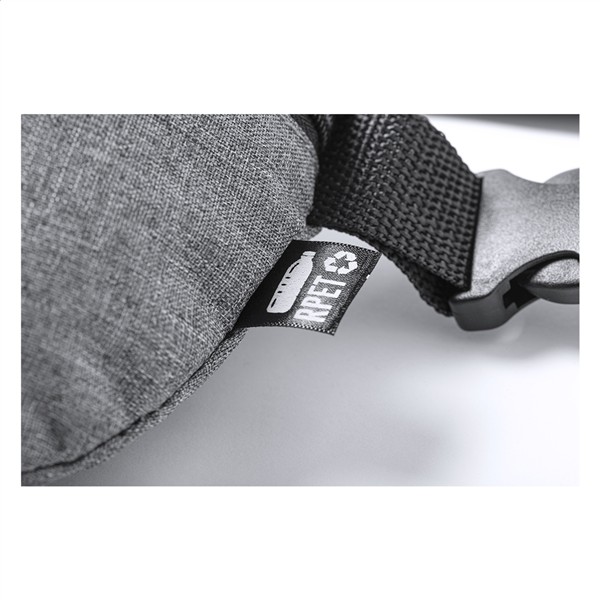 Torba biodrowa RPET z kieszenią na suwak i regulowanym paskiem. Z metką RPET. Poliester 600D RPET.