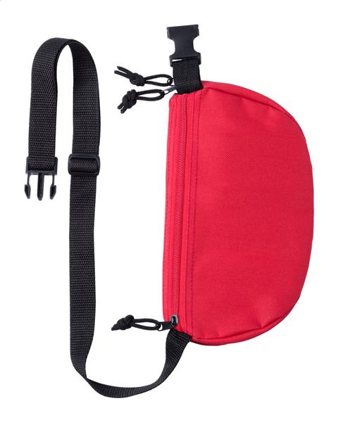 Zapinana, 600D poliester torba biodrowa. Description: Zapinana, 600D poliester torba biodrowa. Primary Color: czerwony Ładowność torby: 3 kg Material 1: 600D poliester Gramatura 1: 330 g/m2 Rozmiar: 250×170×80 mm Pojemność torby: 3.4 l