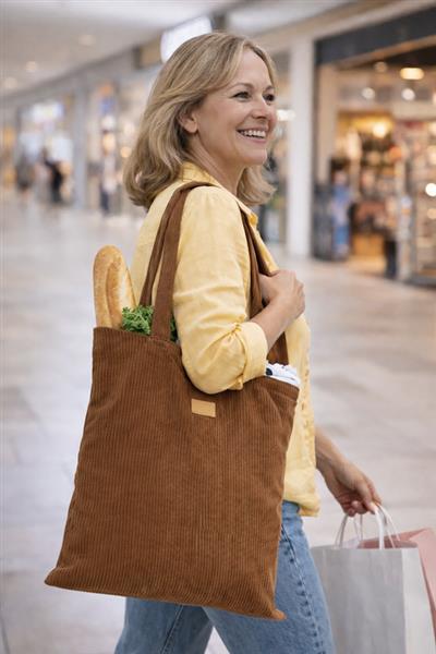 Torba CORDELLA wykonana z tkaniny przypominającej sztruks łączy miękkość z wytrzymałością i modnym wyglądem w stylu vintage. Długie uchwyty umożliwiają wygodne noszenie na ramieniu, a lekka konstrukcja sprawia, że doskonale sprawdza się jako torba na zakupy lub codzienna torba miejska. Wszyta naszywka przeznaczona do znakowania pozwala na subtelne umieszczenie logo. To praktyczny i stylowy model o uniwersalnym zastosowaniu.