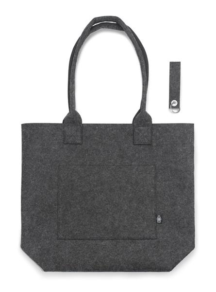 Torba filcowa MARRTO jest funkcjonalna, lekka i praktyczna. Może być używana jako torebka codziennego użytku lub jako torba zakupowa. Posiada wygodne, długie rączki oraz poszerzane dno, dodatkową kieszonkę, co sprawia, że jest bardzo pakowna. Załączony brelok filcowy stanowi miłe uzupełnienie produktu. Wykonana z recyklingowanego filcu rPET.