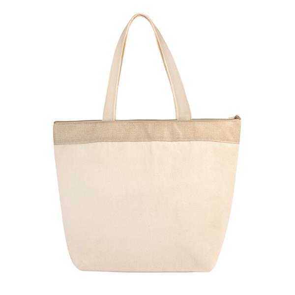 Torba izotermiczna na zakupy wykonana z bawełny 220g/m2 i juty. Zapewnia odpowiednią izolację podczas przenoszenia zakupów.