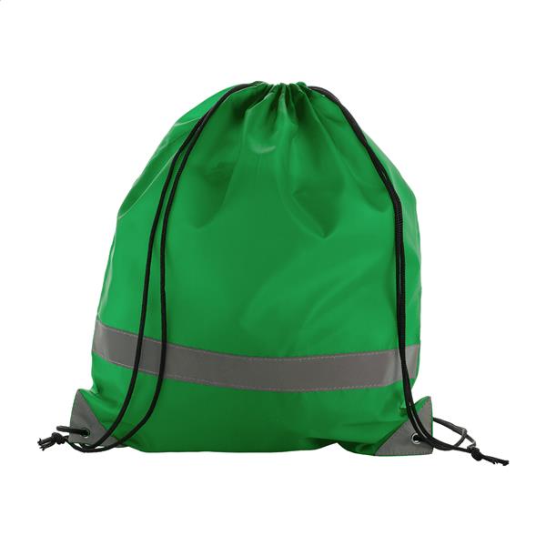 Torba ze sznurkiem z odblaskowymi częsciami. 190 T poliester. Produkt przeznaczony wyłącznie do celów promocyjnych nie kwalifikuje się jako sprzęt ochrony osobistej.