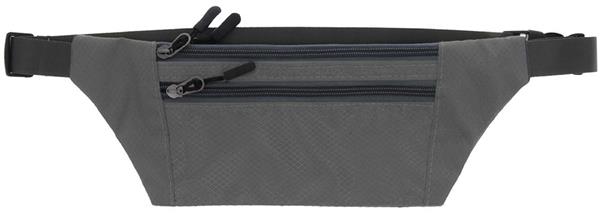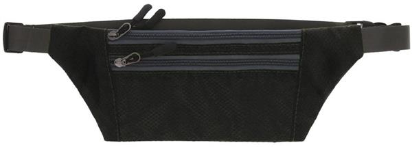 Saszetka na biodro z żakardowego poliestru z 2 zapinanymi na zamek przednimi przegrodami, 1 zapinaną na zamek kieszenią z tyłu i regulowanym paskiem w talii.