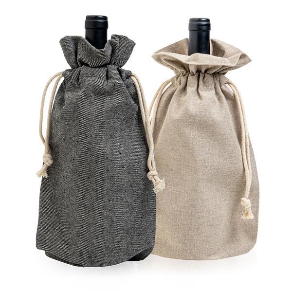 Torba na butelkę z bawełny z recyklingu 280g Rozmiar: 17 x 33 x 13 cm S1 (sitodruk): 20 x 15 TT2 (termotransfer): 20 x 15 Kolor: Czarny