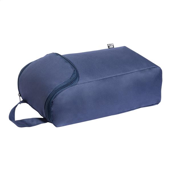 Zapinana na suwak torba RPET do przechowywania pary butów. Poliester 600D RPET z charakterystyczną metką RPET.