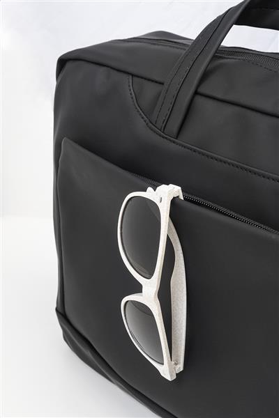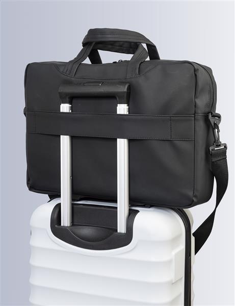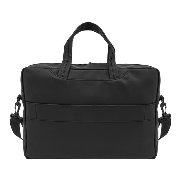 Wodoodporna, miękka torba na dokumenty i laptopa z recyklingowanej skóry PU z przegrodą na zamek błyskawiczny, kieszenią przednią na zamek błyskawiczny, regulowanym paskiem na ramię i wyściełaną przegrodą na laptopa (15″). Z charakterystyczną metką z recyklingowanego PU.
