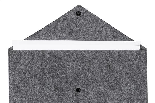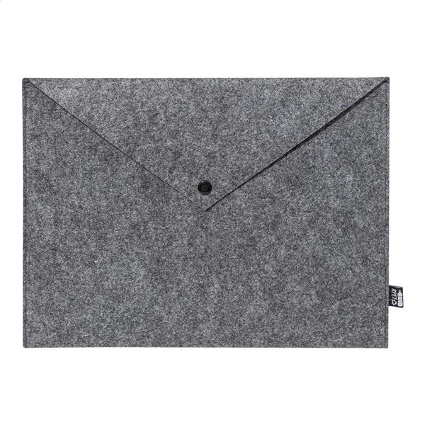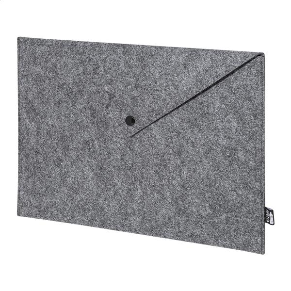 Filcowa torba na dokumenty lub laptop z RPET, zapinana na guzik. Pasuje do laptopów o przekątnej do 13 cali. Z charakterystyczną metką RPET.