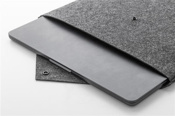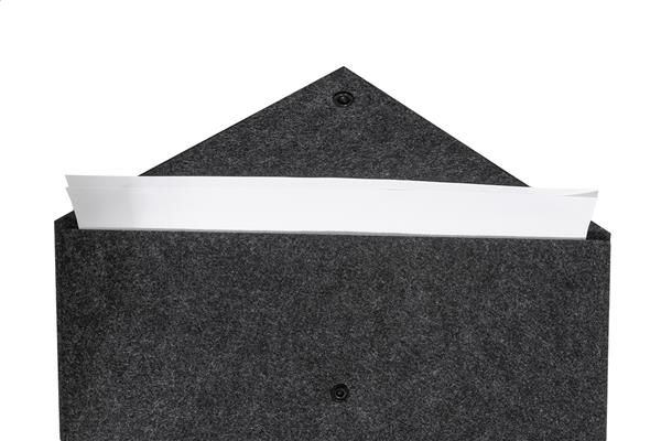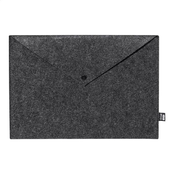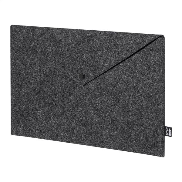 Filcowa torba na dokumenty lub laptop z RPET, zapinana na guzik. Pasuje do laptopów o przekątnej do 13 cali. Z charakterystyczną metką RPET.