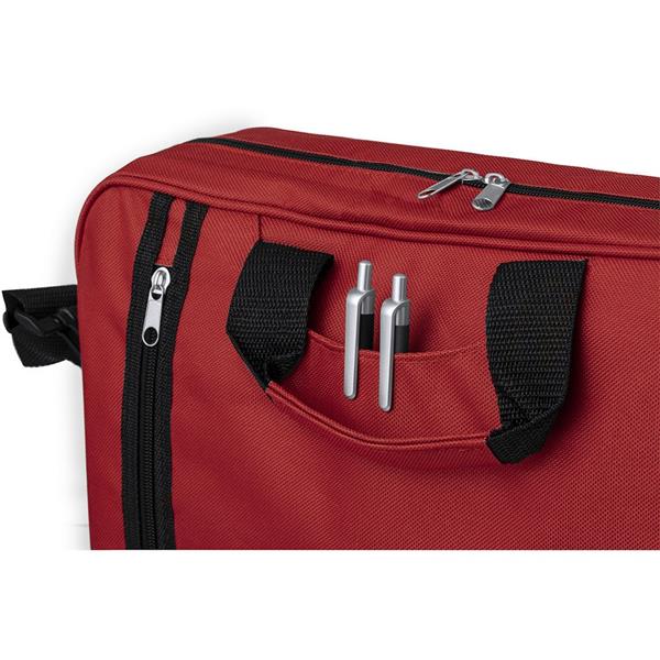 Torba na dokumenty, posiada pionową kieszeń z przodu i główną przegrodę na zamek błyskawiczny, dwa uchwyty ułatwiające noszenie, odpinany i regulowany pasek na ramię umożliwiający dopasowanie jego długości do własnych preferencji, produkt wykonany z poliestru 600D Strona w katalogu: 192 Materiał produktu: poliester 600D Wymiary produktu: 37 x 29 x 9 cm Kraj pochodzenia: CN […]