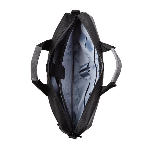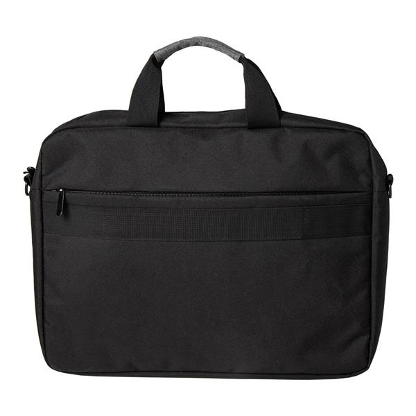 Ponadczasowa torba na laptop z tkaniny oxford powlekanej PVC. Materiał odporny na rozdarcia. Duża usztywniana kieszeń przeznaczona na laptop 17″. 6 kieszeni wewnętrznych różnej wielkości i 3 kieszenie zewnętrzne umożliwiają zabranie ze sobą wszystkiego co niezbędne. Dopinany pasek pozwala nosić torbę na ramieniu. Dodatkowy pasek z tyłu torby pozwala umieścić ją na rączce od walizki.