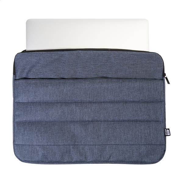 W pełni wyściełana torba na laptopa RPET z przegrodami zapinanymi na zamek. Pasuje do laptopów do 15″. Poliester 300D RPET. Z metką RPET.