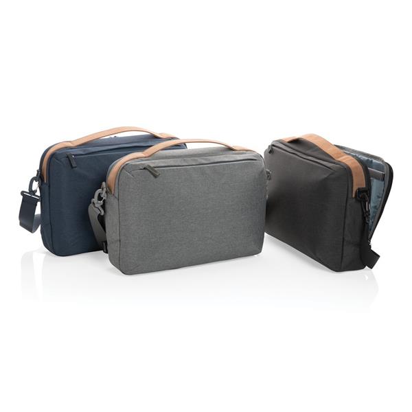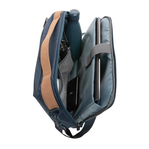 Torba na laptopa 15,6″, wewnątrz 2 kieszenie z siatki, z przodu kieszeń na zamek, uchwyt z PU, materiał zewnętrzy oraz podszewka wykonane z materiałów pochodzących z recyklingu, dzięki czemu każdy plecak został wykonany z 8,75 ponownie przetworzonych butelek PET 0,5l, dzięki zastosowaniu technologii śledzącej AWARE™ wykorzystane włókna są identyfikowalne z pochodzenia, 2% wpływów z każdego sprzedanego produktu z kolekcji Impact jest przekazywane na rzecz Water.org