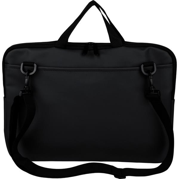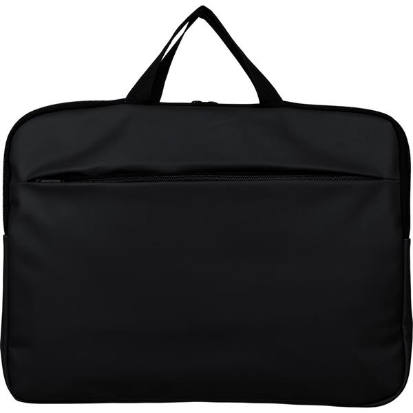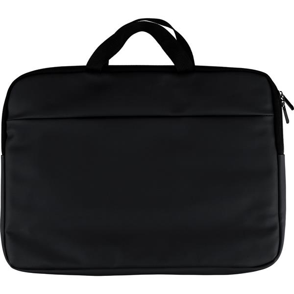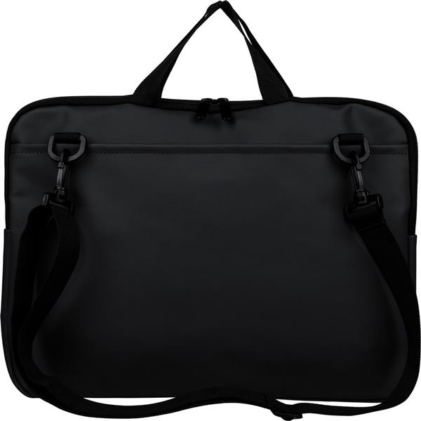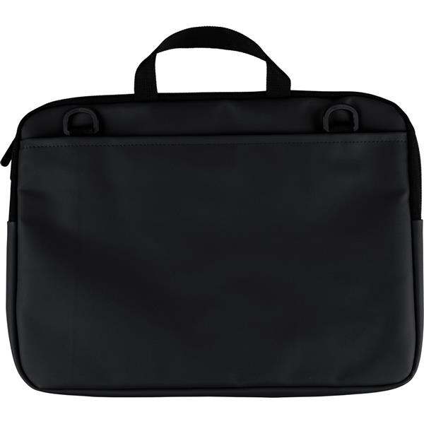 Torba na laptopa 15″, podszewka z poliestru 210D, grubość wyściółki: 4 mm, tylna kieszeń zapinana na rzep, kieszeń główna zapinana na zamek, 2 krótkie uchwyty do noszenia, regulowany pasek na ramię ułatwiający noszenie, ikona recyklingu na metce, produkt wykonany z PU z recyklingu i poliestru