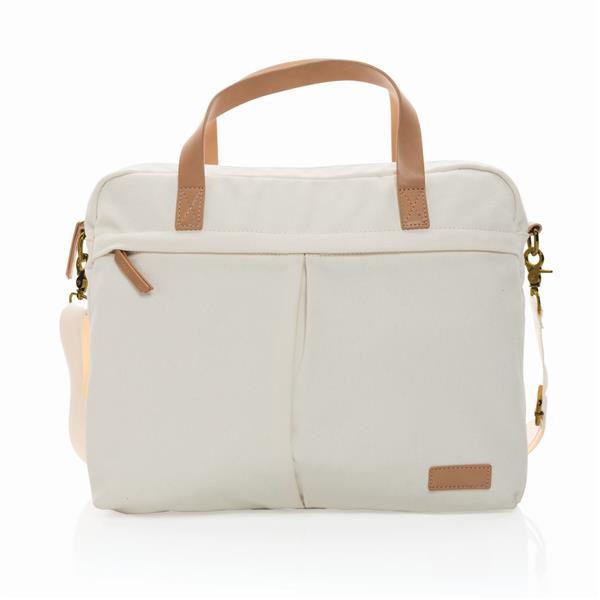 Torba na laptopa 15,6″, przestronne kieszeń z przodu i z tyłu, wykonana z mieszanki 60% bawełny z recyklingu i 40% poliestru z recyklingu, dzięki zastosowaniu technologii śledzącej AWARE™ wykorzystane włókna są identyfikowalne z pochodzenia, 2% wpływów z każdego sprzedanego produktu z kolekcji Impact jest przekazywane na rzecz Water.org