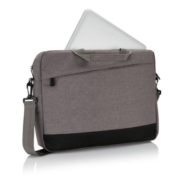 Torba na laptopa 15,6″, wykonana z poliestru 600D, główna przegroda podzielona na dwie strony, przednia kieszeń na zamek błyskawiczny, nie zawiera PVC, ślad węglowy produktu: 4,05 kg CO2