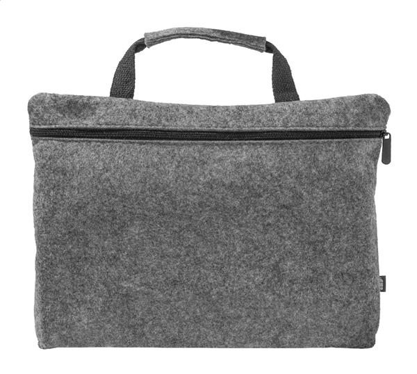 Filcowa torba na dokumenty lub laptopa z RPET, z główną komorą zapinaną na zamek i wewnętrzną kieszenią zapinaną na zamek. Pomieści laptopy do 15 cali. Z charakterystyczną metką RPET.