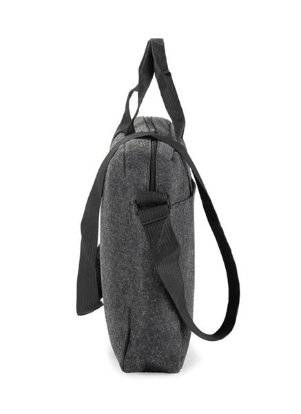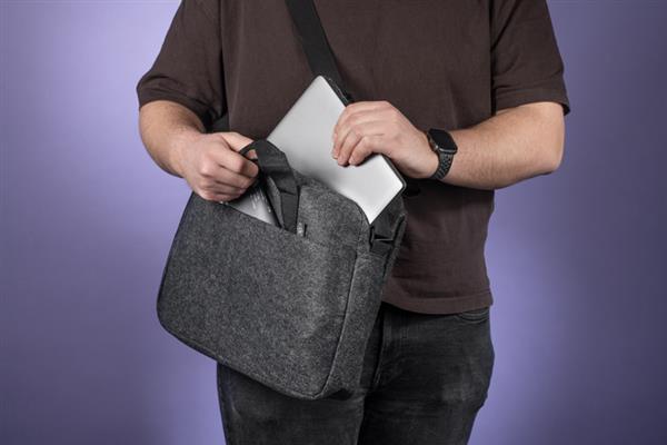Torba na laptopa TEKKO wykonana jest z recyklingowego filcu rPET, co zapewnia jej trwałość i lekkość. Posiada krótkie uchwyty do trzymania w ręku oraz regulowany, długi pasek do noszenia na ramieniu. Główna komora, bez dodatkowych przegródek, zamykana jest na suwak. Z przodu znajduje się kieszonka na drobiazgi, zapinana na rzep. Prosty i funkcjonalny design sprawia, że torba sprawdzi się w codziennym użytkowaniu. Możliwość znakowania czyni ją atrakcyjnym gadżetem reklamowym.