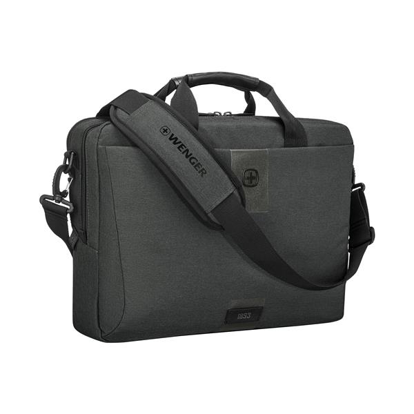 Torba na laptopa wyposażona w przegrodę na laptopa o przekątnej 16` oraz tablet 10`, organizer ułatwiający utrzymanie porządku oraz odpinany pasek na ramię . Materiał zewnętrzny torby to materiał pochodzący z recyklingu butelek PET.