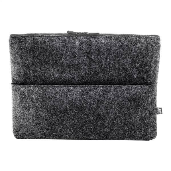 Torba na laptopa z filcu RPET z kieszenią na suwak i kieszenią z przodu. Pasuje do laptopów do 15″. Z charakterystyczną metką RPET.