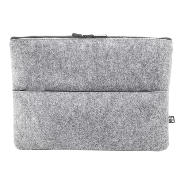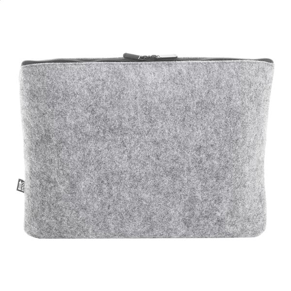 Torba na laptopa z filcu RPET z kieszenią na suwak i kieszenią z przodu. Pasuje do laptopów do 15″. Z charakterystyczną metką RPET.