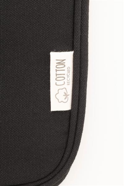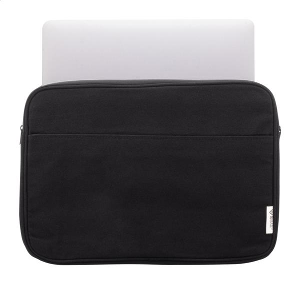 W pełni wyściełana torba na laptopa z płótna z recyklingu z przegrodą na suwak i kieszenią z przodu. Pasuje do laptopów do 15″. 70% bawełny z recyklingu i 30% poliestru RPET. Z charakterystyczną metką z bawełny z recyklingu.