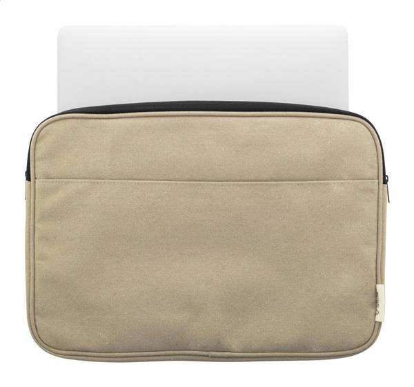 W pełni wyściełana torba na laptopa z płótna z recyklingu z przegrodą na suwak i kieszenią z przodu. Pasuje do laptopów do 15″. 70% bawełny z recyklingu i 30% poliestru RPET. Z charakterystyczną metką z bawełny z recyklingu.