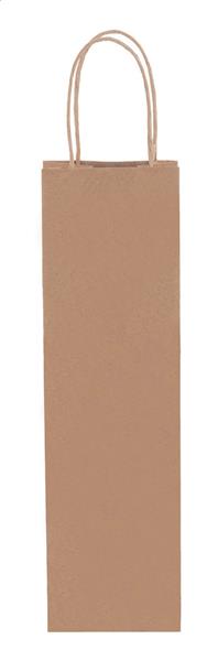 Torba prezentowa z papieru pakowego z recyklingu na butelkę wina z bożonarodzeniowym wzorem wytłoczonym folią, ze skręconymi uchwytami i zawieszką prezentową. 140 g/m2.