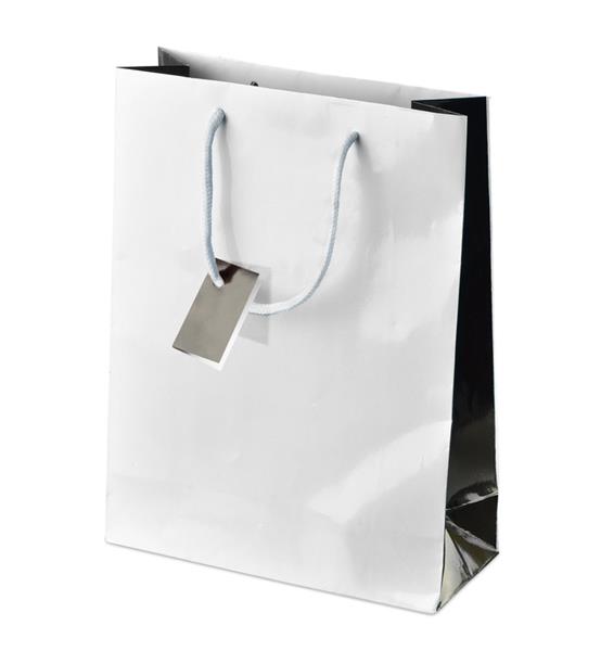 Uniwersalna torba papierowa do pakowania prezentów będzie pięknym opakowaniem nie tylko świątecznych upominków. Posiada eleganckie czarne boki, które są jej dodatkową ozdobą. Torba z rączkami ze sznurka, do rączek dołączony bilecik, na którym można wydrukować logo lub wpisać własny tekst życzeń. Gramatura papieru 157 gsm.