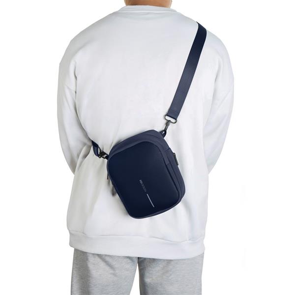 Torba na ramię, saszetka, ukryta kieszeń z tyłu, ukryta kieszeń na butelkę, wykonana z materiałów z recyklingu, dzięki zastosowaniu technologii fizycznych znaczników AWARE™ wykorzystane materiały są identyfikowalne z pochodzenia, ślad węglowy produktu: 2,94 kg CO2