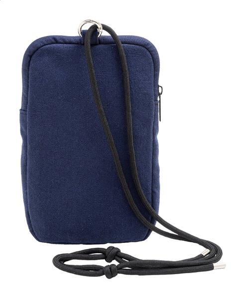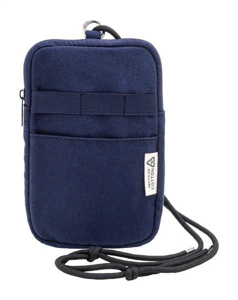 Torba na telefon komórkowy z płótna z recyklingu, z główną komorą zapinaną na zamek, kieszenią z przodu i regulowanym sznurkiem z poliestru RPET. Wykonana w 70% z bawełny z recyklingu i w 30% z poliestru RPET. Z charakterystyczną metką z bawełny z recyklingu.