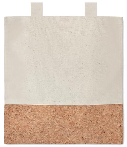 Bawełniana torba na zakupy ze wstawką z korka. Długie uchwyty. 160 g / m2. Korek jest materiałem naturalnym, ze względu na jego strukturalną naturę i porowatość powierzchni ostateczny wygląd nadruku na każdym artykule może się różnić. Wykonane zgodnie z certyfikowanym standardem dotyczącym stosowania szkodliwych substancji w tekstyliach.