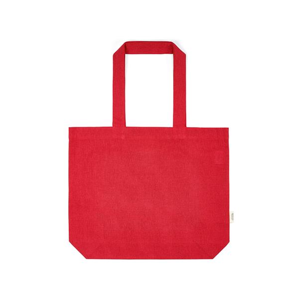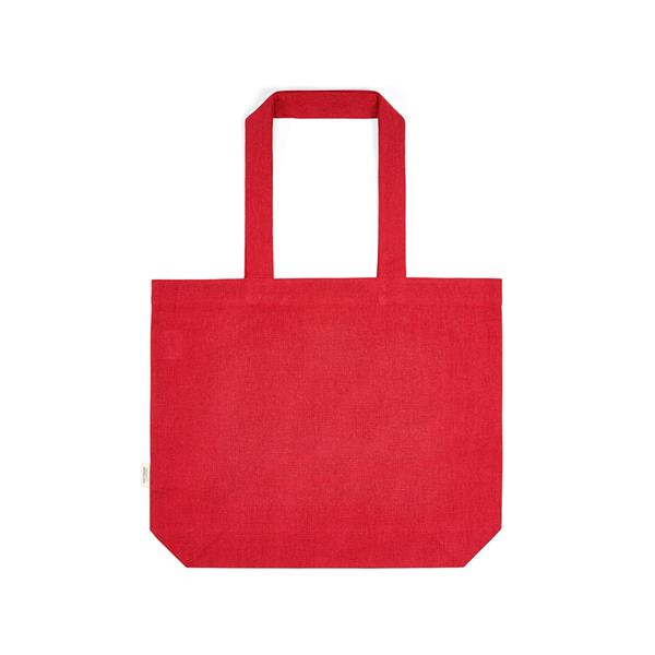 Nasza tętniąca życiem torba wyróżnia się w centrum działań na rzecz zrównoważonego rozwoju. Wykonana w 70% z bawełny z recyklingu i w 30% z poliestru z recyklingu, z wytrzymałego materiału o gramaturze 220 g/m2 i przestronnymi wymiarami (19L) dzięki 10-centymetrowemu klinowi. Uchwyty o długości 65 cm gwarantują wygodę.