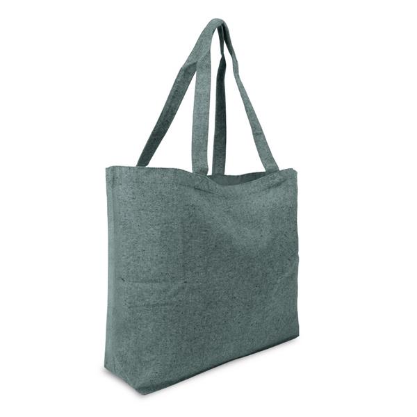 Torba na zakupy Fairtrade B’RIGHT w kolorach melange, z szerokim i wytrzymałym dnem, posiada długie uchwyty (długość 70 cm, szerokość 3 cm) umożliwiające noszenie na ramieniu, możliwość nadrukowania dużego i widocznego z daleka logotypu, wykonana w 50% z nieprzetworzonej bawełny i w 50% z poliestru z recyklingu o gramaturze 300 g/m2