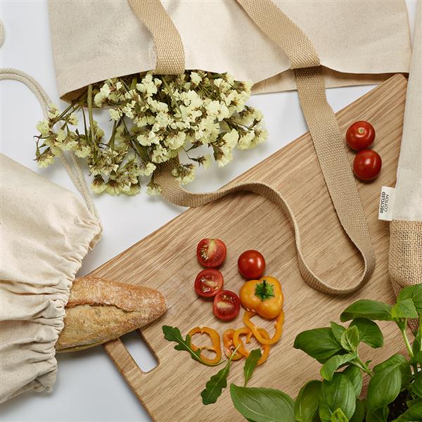 Ta pochodząca z recyklingu bawełniana torba ze sznurkiem o gramaturze 180 g/m2 to strzał w dziesiątkę. Wymiary 37 x 41 cm (10L) sprawiają, że nadaje się nie tylko na zakupy, ale także na siłownię, plażę i na co dzień. Wzmocnione dno z juty (275 g/m2) sprawia, że jest to niezawodny towarzysz każdej przygody.