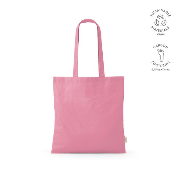Wykonana w 70% z bawełny pochodzącej z recyklingu i w 30% z poliestru pochodzącego z recyklingu, ta lekka torba jest eko-bohaterem. Materiał o gramaturze 140 g/m2, stylowe uchwyty o długości 65 cm i duże wymiary (11L). Żywe kolory rozjaśnią każdy dzień.