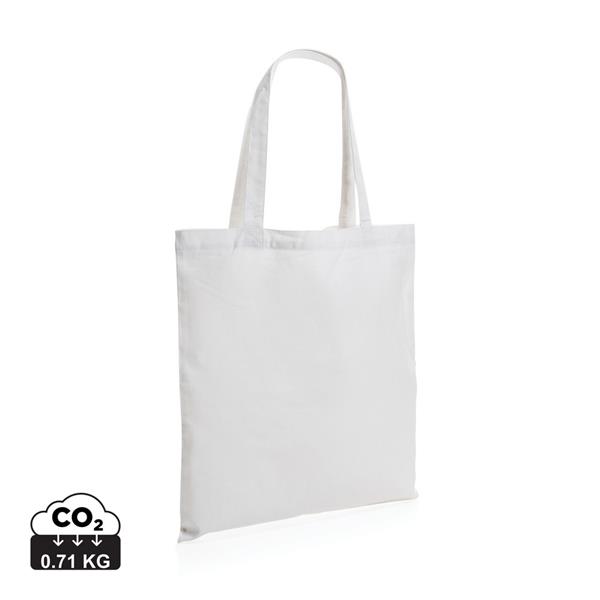 Torba na zakupy, wykonana z mieszanki 70% bawełny i 30% RPET o gramaturze 145 g/m2 pochodzących z recyklingu, dzięki zastosowaniu technologii AWARE™ wykorzystane materiały są identyfikowalne z pochodzenia, 2% wpływów z każdego sprzedanego produktu z kolekcji Impact jest przekazywane na rzecz Water.org