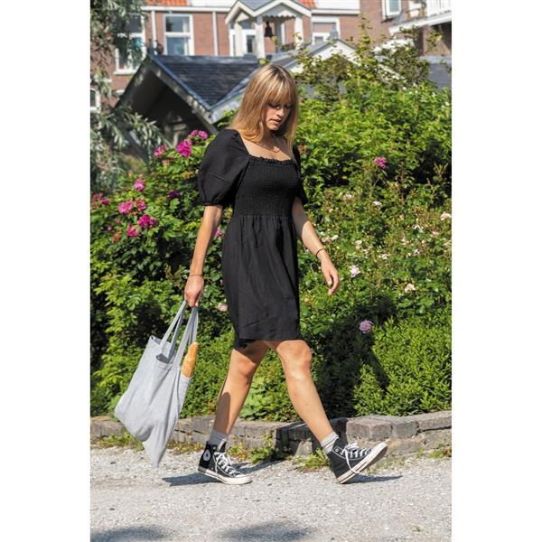 Torba na zakupy, wykonana z mieszanki 70% bawełny i 30% RPET o gramaturze 145 g/m2 pochodzących z recyklingu, dzięki zastosowaniu technologii AWARE™ wykorzystane materiały są identyfikowalne z pochodzenia, 2% wpływów z każdego sprzedanego produktu z kolekcji Impact jest przekazywane na rzecz Water.org
