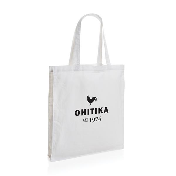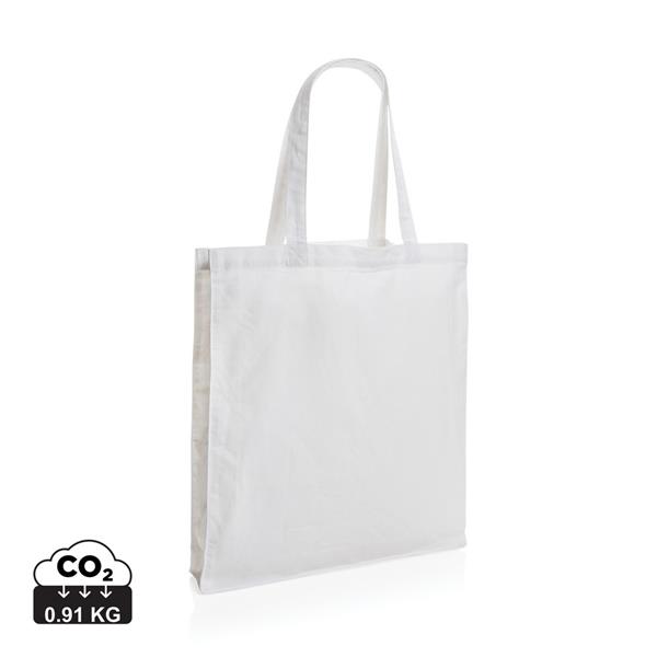 Torba na zakupy, posiada wstawkę na spodzie o szerokości 6 cm, która zapewnia dodatkowe miejsce, wykonana z mieszanki 70% bawełny i 30% RPET pochodzących z recyklingu, dzięki zastosowaniu technologii AWARE™ wykorzystane materiały są identyfikowalne z pochodzenia, 2% wpływów z każdego sprzedanego produktu z kolekcji Impact jest przekazywane na rzecz Water.org