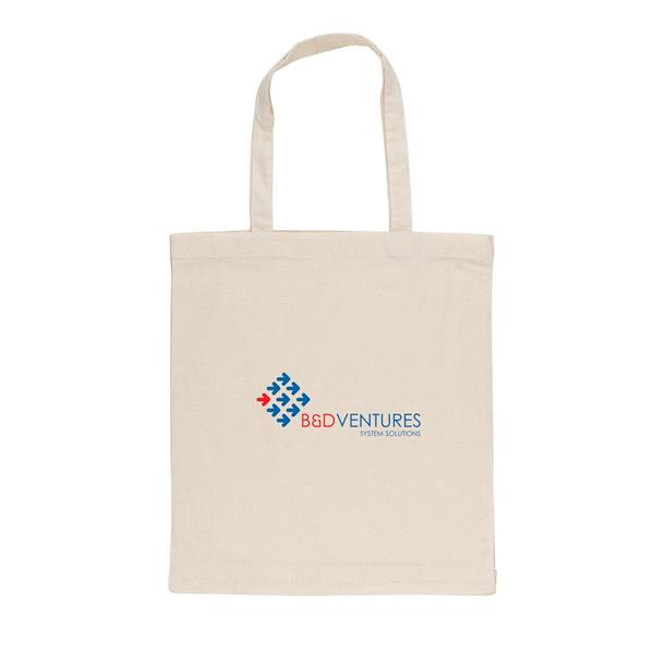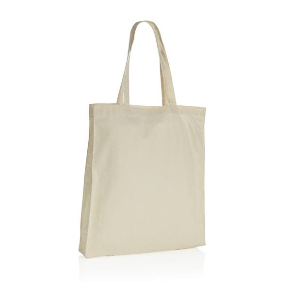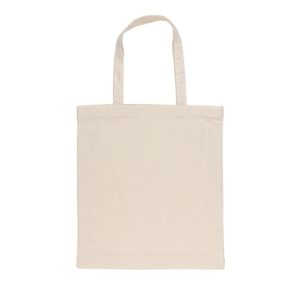 Torba na zakupy, posiada wstawkę na spodzie o szerokości 6 cm, która zapewnia dodatkowe miejsce, wykonana z mieszanki 70% bawełny i 30% RPET pochodzących z recyklingu, dzięki zastosowaniu technologii AWARE™ wykorzystane materiały są identyfikowalne z pochodzenia, 2% wpływów z każdego sprzedanego produktu z kolekcji Impact jest przekazywane na rzecz Water.org