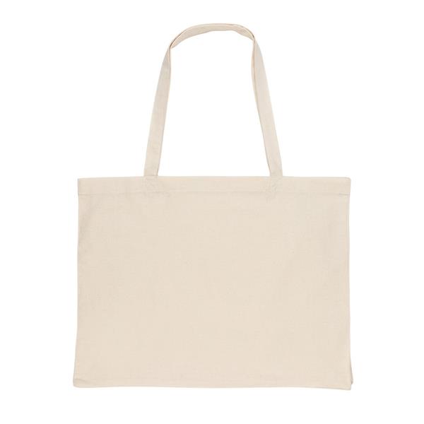 Torba na zakupy, posiada wstawkę na spodzie o szerokości 14 cm, która zapewnia dodatkowe miejsce, wykonana z mieszanki 70% bawełny i 30% RPET pochodzących z recyklingu, dzięki zastosowaniu technologii AWARE™ wykorzystane materiały są identyfikowalne z pochodzenia, 2% wpływów z każdego sprzedanego produktu z kolekcji Impact jest przekazywane na rzecz Water.org