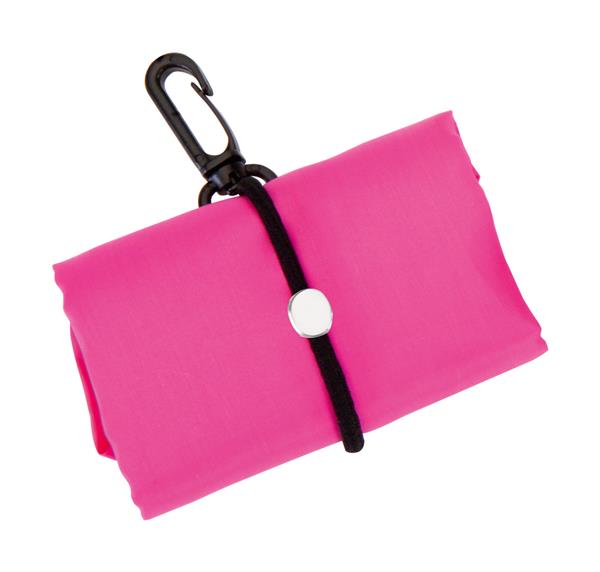 Description: Składana torba na zakupy z plastikowym karabińczykiem, 190T poliester. Primary Color: fuksji Material 1: 190T poliester Gramatura 1: 50 g/m2 Rozmiar: 425×380×70 mm Ładowność torby: 5 kg Pojemność torby: 9 l