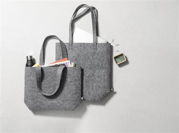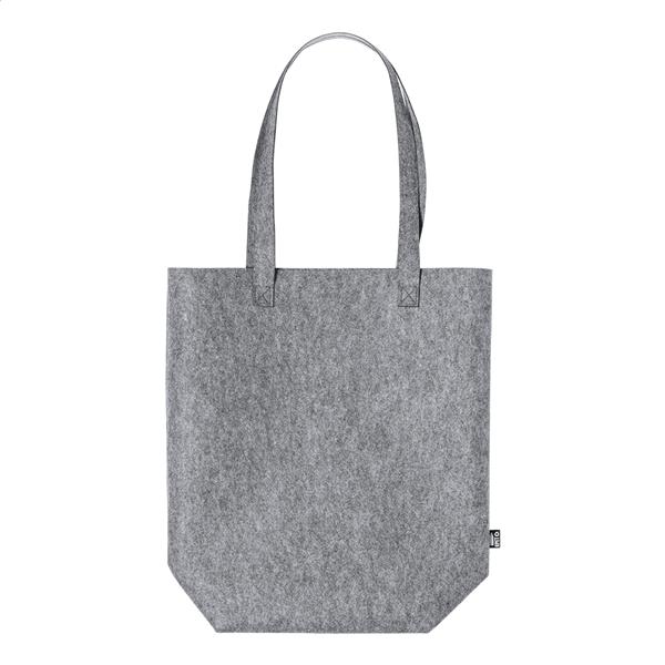 Filcowa torba na zakupy RPET z wyjątkowo długimi uchwytami i dnem. Z charakterystyczną metką RPET.