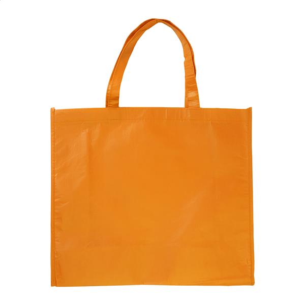 Laminowana torba z RPET na zakupy ze średniej długości uchwytami. Poliester RPET 105 g/m2. Z metką RPET.