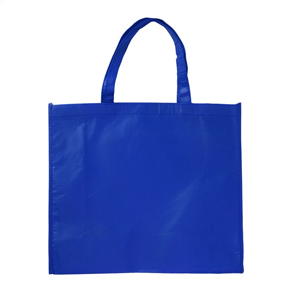 Laminowana torba z RPET na zakupy ze średniej długości uchwytami. Poliester RPET 105 g/m2. Z metką RPET.