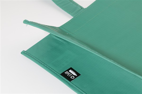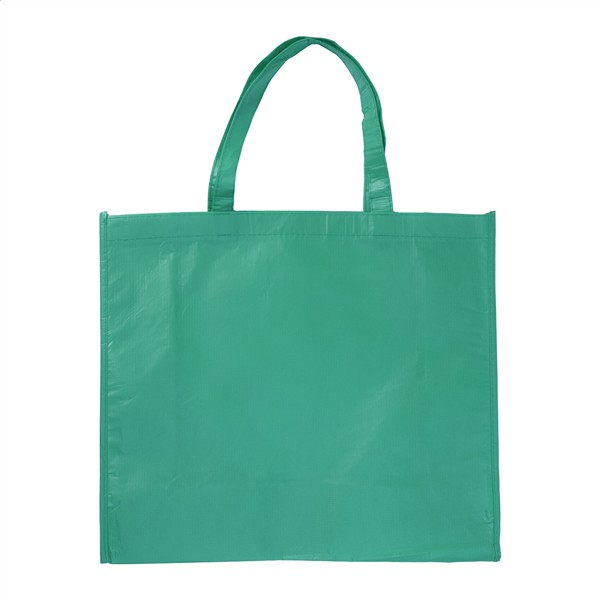 Laminowana torba z RPET na zakupy ze średniej długości uchwytami. Poliester RPET 105 g/m2. Z metką RPET.